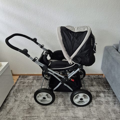 Fin grøn vendbar Emmaljunga klapvogn med roterbare hjul