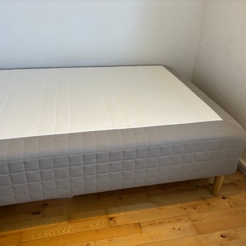 Pæn og velholdt halvandenmandsseng sælges. Sengen er enkel i design med lyse ben og neutral farve, som passer ind i de fleste hjem.