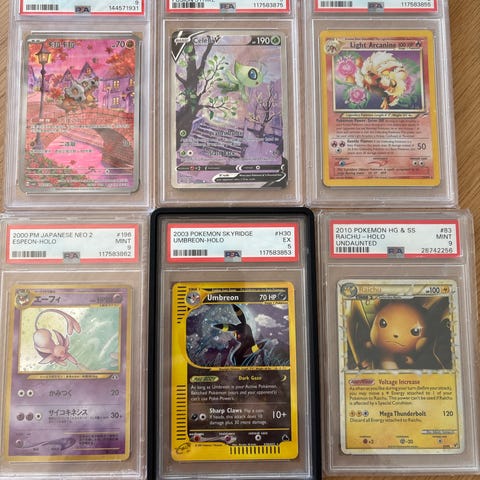Sælger et lille lot Pokemon kort med bl.a. EX Delta Species kort i PSA-slab og et Lucario VSTAR kort i hard sleeve. God bunke til samleren, alle kort er originale Pokemon TCG kort.