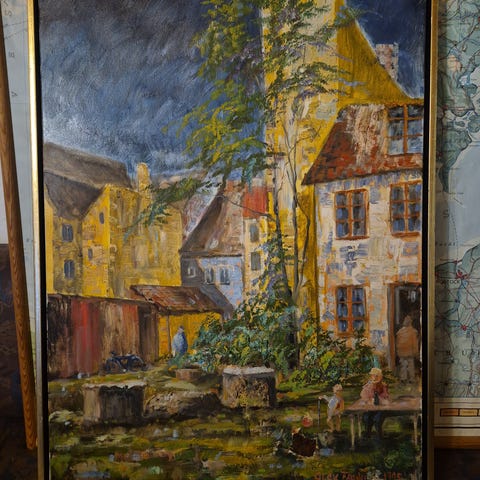 Billedet er malet på en træ plade.