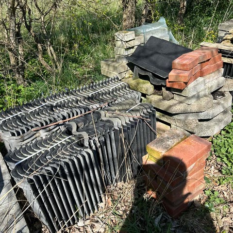 Stak bølgeeternit tagplader i sorte 42 x 34 sælges eventuelt samlet. Pladerne er taget ned fra et lille tag og har den klassiske bølgeprofil.
