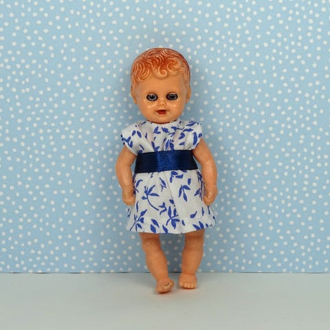 Vintage ARI dukkehus dukke. Lavet af gummi i Tyskland i 1970erne. Malede sko, ansigt og hår. Bevægelige arme og ben. I rigtig fin stand, dog med lidt slitage på malingen.
