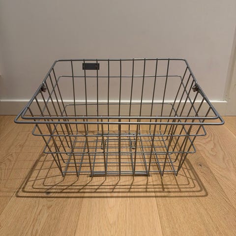 Sælger denne praktiske og lette aluminiums cykelkurv fra Velorbis, som min cykel var monteret med. Den er i farven RAL 0002: Silver Chrome-look.