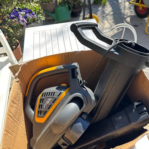 Cocraft HL 2500 løvsuger/løvblæser i blå med opsamlingspose. Har bærestrop, hjul for enden og justerbart rør, så den er nem at arbejde med på terrassen eller i haven.
