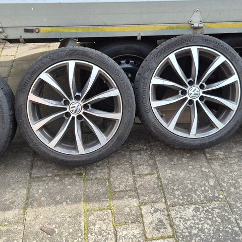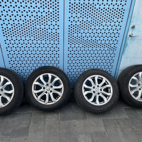2 fælge er fejlfri. 2 fælge har ridser, se billeder. Dækkene har 5mm tilbage. Har siddet på en passat B8.
