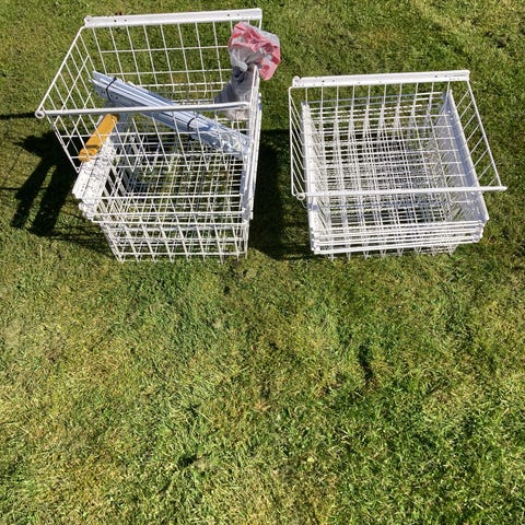 Trådkurve som ekstra indsats i skabet. Er købt i Jysk til 300kr. Vi har to vi ikke har plads til efter en flytning.