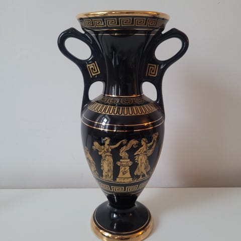 Antik græsk vase sort med guld dekoration