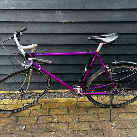 Der er montage almindelig pedaler, men der medfølger klik-pedaler. Desuden er der låst og sadeltaske på. Taske til styr og lille pumpe medfølger.