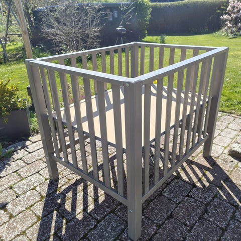 Tremmeseng, blå, med tilhørende lavere gærred. 65x122cm