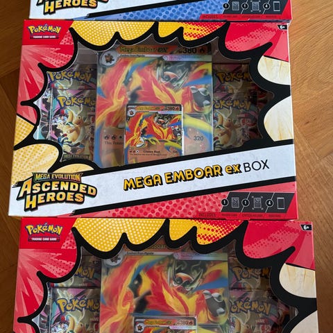 5x Pokémon Mega Evolution Ascended Heroes booster bundle sælges.