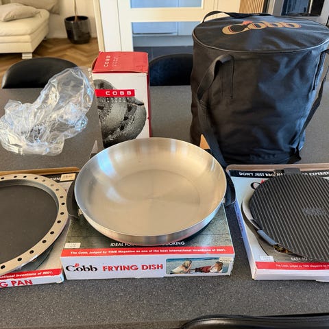 Sælger en komplet Cobb grill med en masse ekstra tilbehør – perfekt til alt fra grill, stegning, pizza og hygge på altan, terrasse eller camping.