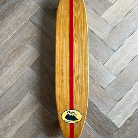 Et autentisk “sidewalk surfing” board fra perioden før urethane hjul ændrede sporten i 1970’erne.