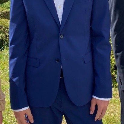 Jakkesæt + skjorte, Formel, str. M, Blå, Næsten som ny, Super flot Jakkesæt + skjorte fra konfirmation sælges.