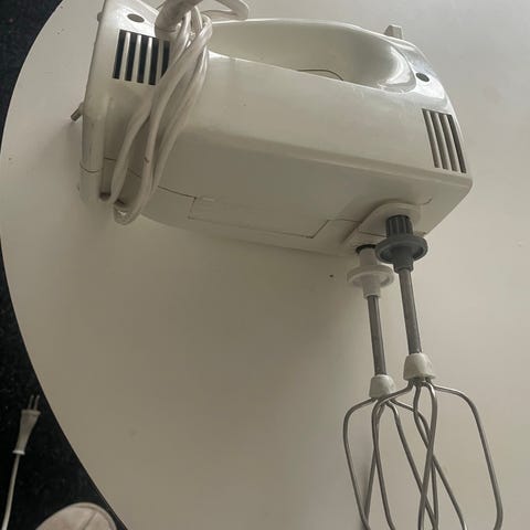 Bosch håndmixer i hvid med piskeris og dejkroge. Med stavblender, minihakker og litermål incl. låg.