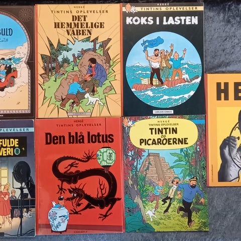 Her sælges 6 stk. Tintin-album skabt af Hergé: