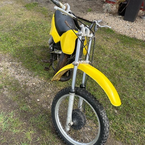Den kan bruges til reservedele, den starter når den får noget strøm, så motoren er i god stand, det er en 107 ccm 4-takt der passer lige over på en Honda CD eller Dax, den kan selvfølgelig også bruges til andet sjov.