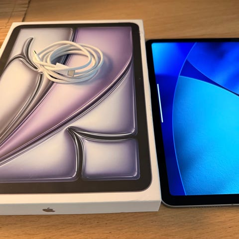 Apple iPad Air 13” med 128 GB lagerplads sælges. Har stor skærm og metalbagside med Apple-logo.