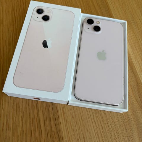 Apple iPhone 13 med 128 GB i hvid. Har dobbelt kamera bagpå og flad skærm med knapper i siden som på de nye modeller. I prisen medfølger 3 covers fra Nudient (Rose, camel, Wine), alle i flot stand.