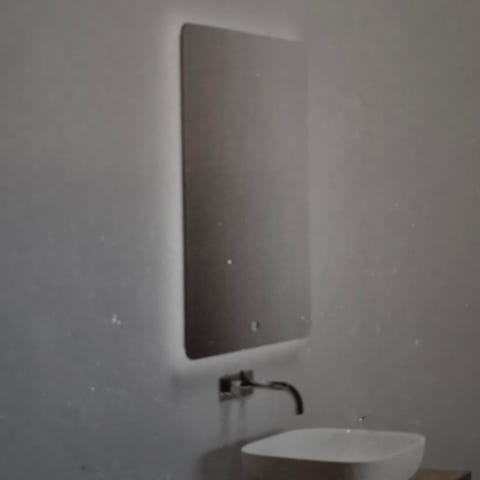 Spejlet er modellen IFÖ Option Frosted med integreret halogenbelysning (4 spots), som giver et behageligt og funktionelt lys – perfekt til daglig brug på badeværelset.