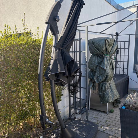 Har stået under halvtag, så den har været godt beskyttet , dog er den en smule falmet af sollys, men fungerer som den skal uden problemer.