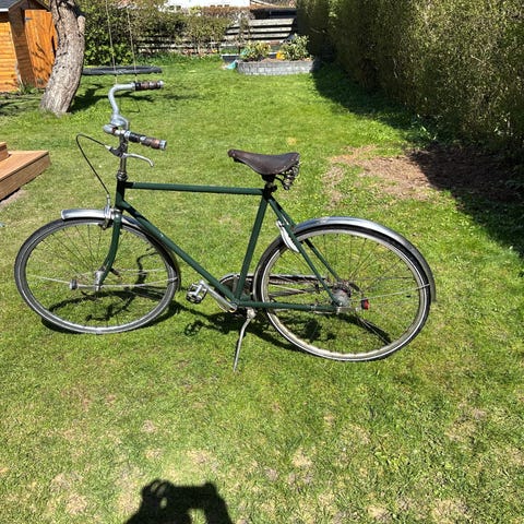 Sælger min trofaste lilla herrecykel, som bare kører skidegodt og har det helt rigtige retro-look. Den er 60 cm høj, så den passer perfekt til dig, der er lidt højere end gennemsnittet og gerne vil sidde godt. Jeg har lige smidt en helt ny kæde på, så den kører lydløst og smidigt gennem byen. Den har 5 indbyggede gear, hvilket er super nemt at have med at gøre, og du slipper for en masse bøvl med vedligeholdelse. Den står med lidt patina, som man kan forvente af en ældre sag, men den er solid og klar til mange flere kilometer på asfalten. Du får en cykel, der skiller sig ud i bybilledet uden at være alt for fin til at blive brugt hver dag.