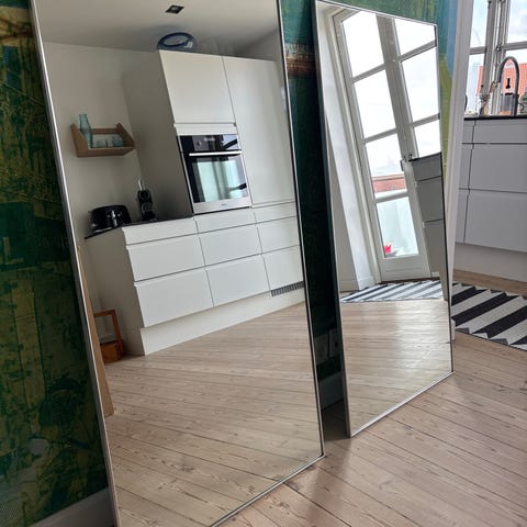 Stort IKEA HOVET spejl i aluminium ramme (farven sælges ikke længere), måler 78x196 cm.