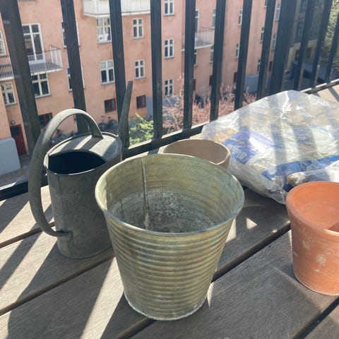 Flere forskellige blomsterpotter sælges , bl.a. en terrakotta potte. De er gode til altanen eller haven til dine planter.