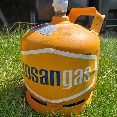 5 kg fyldt og plomberet gasflaske fra Kosangas / Primagaz som er lige klar til brug -flere haves