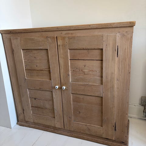 Flot afsyret skab i fyrretræ med tilhørende spejl. Flot til soveværelset.