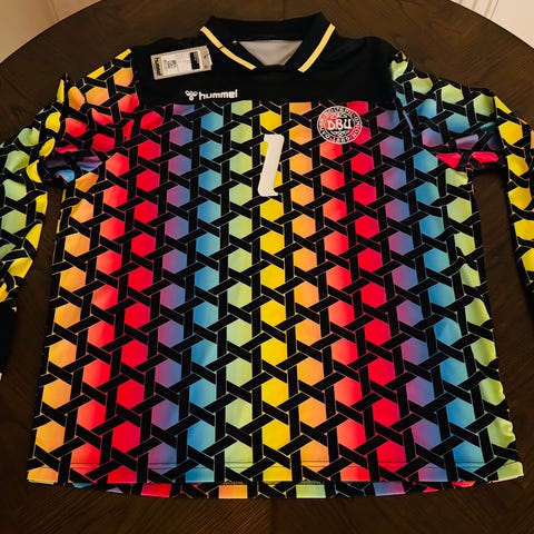 I rigtig flot stand. Ingen pletter og trykket er god stand. Størrelse 2xl og med Jørgensen på ryggen.