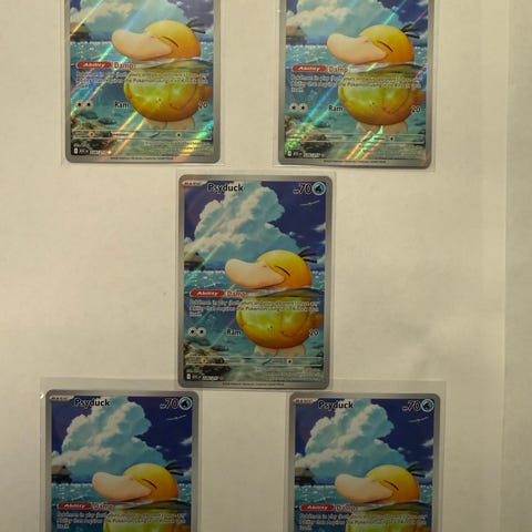 Pokémon kort med Psyduck motiv, holo udgave. Godt kort til samlingen med tydelig tekst og illustration.