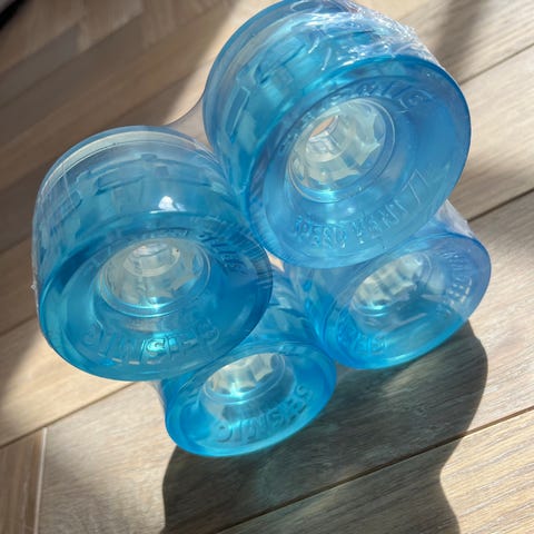 Sæt med 4 stk. Hawgs 70’s longboard hjul i flot Blue Swirl farve.