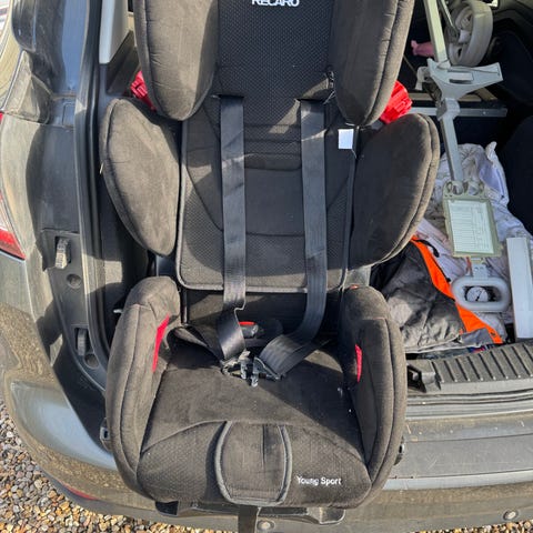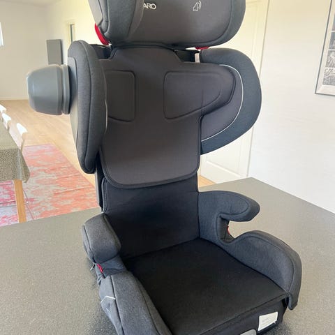 Recaro autostol til 15-36 kg i sort med røde detaljer. Har isofix-beslag og justerbar ryglæn/nakkestøtte. Model Med indbygget højtaler