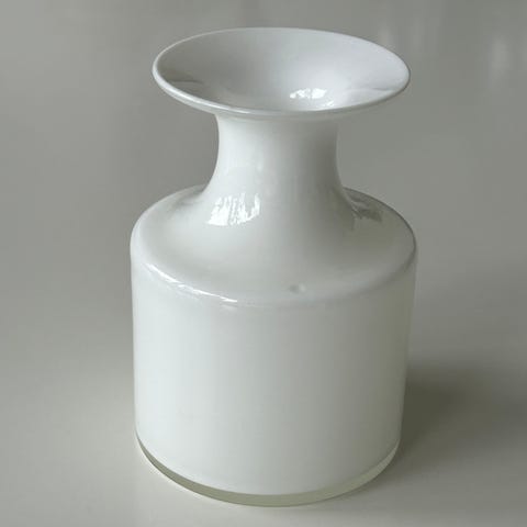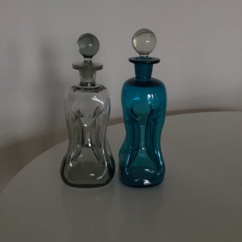 Hvid Bing og Grøndal porcelænskaraffel. Karaffelen måler 12 cm høj og 11 cm i diameter. Logoet er fra Den Frie Købmand.