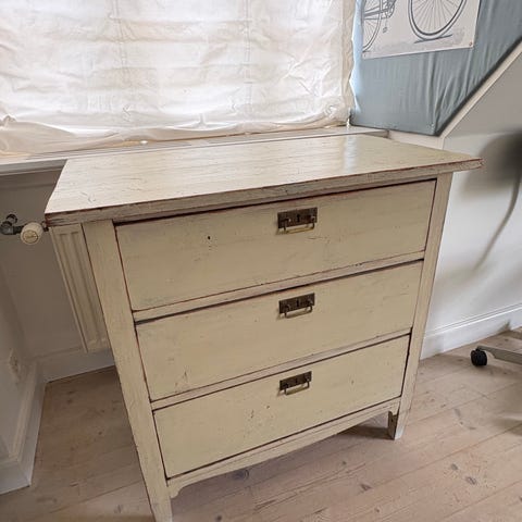 Fin gammel kommode i træ med masser af patina. Den har 4 skuffer.