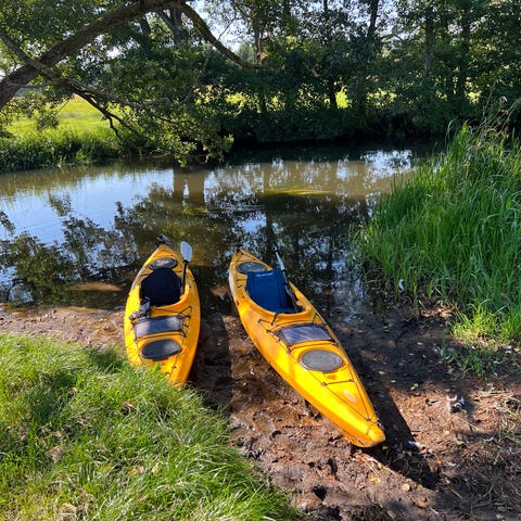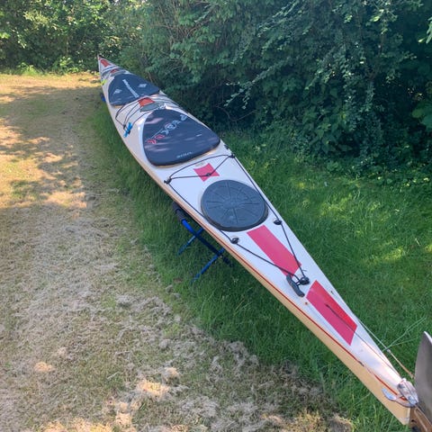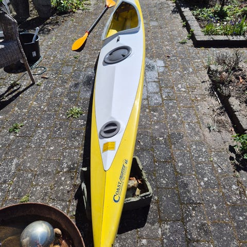 Velsejlende 2er kajak der kan bære to voksne og et barn. Sælges komplet med to sæt pagajer, transporthjul så en enkelt person kan slæbe den til stranden, bærehåndtag, 2 monterbare sæder. Længde 410 cm, bredde, 84 cm, vægt 34 kg, lasteevne 250 kg. Med følger endvidere en rummelig og vandtæt taske (Watergate).til at tage med på tur.