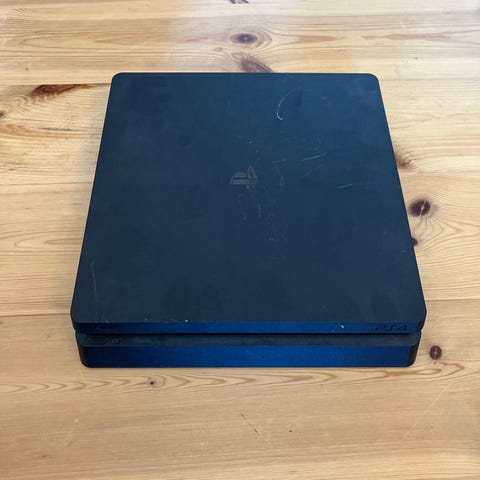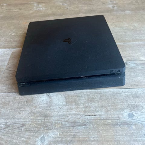Sony Playstation 4 konsol i sort. Har mat overflade og klassisk PS4-design.