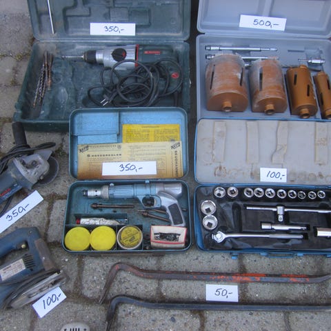 Kop diamant bor sæt med 5 - 8 - 10 - 12,5 cm. De 2 mindste er aldrig brugt, de 2 største er brugt få gange, malingen er ikke slidt helt af på disse.