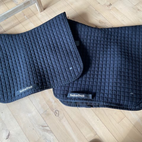 2 stk. sorte sadelunderlag fra Catago med quiltet mønster. Har stropper foroven og åndbar mesh langs ryggen.