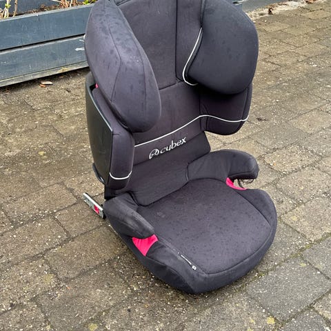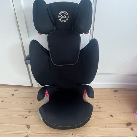 Cybex solution m-fix selepude/autostol i sort med røde detaljer og høj ryg. Har justerbar ryglæn og hovedstøtte samt brede armlæn. Til børn på 3-12 år / 15-36 kilo. Til isofix eller 3-punktsselen.