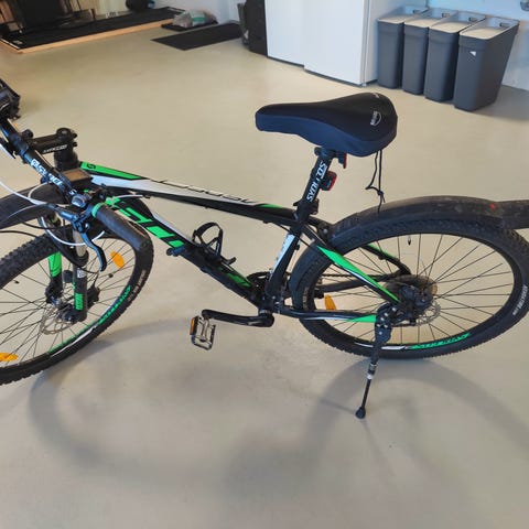 Forreste gearvælger går noget trægt, da den ikke er blevet brugt. Forgaffelben har lidt rust, ellers pæn og velholdt.