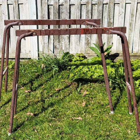 Sæt med 2 solide arbejdsbukke i sort og gul. Foldbare (Folding Sawhorse), nemme at opbevare og transportere. Perfekte til værksted, byggeprojekter eller gør-det-selv arbejde. I god og funktionel stand.