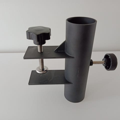 Holder til parasol. Skrues fast på gelænder