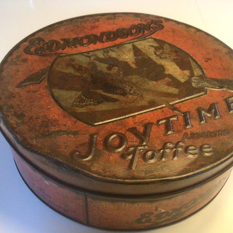 En gammel blik dåse som er i en smuk form , er i ren blik men med trykte motiver overalt , vindmøller, skibe, blomster ranker og en fin lille knop i toppen , helt sikkert Hollandsk , Søgeord ! Samler, æske , pynt, retro , vintage, dekoration, Deco , indbo ,indretning, samleobjekt , SENDER KUN MED DAO ELLER AFHENTNING .