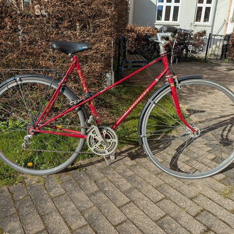 Cyklen er gammel, men kører fint og stabilt. Den har tydelige spor af alder og brug – på den helt rigtige måde. Med lidt løbende kærlighed og almindelig vedligeholdelse kan den holde i mange år endnu.