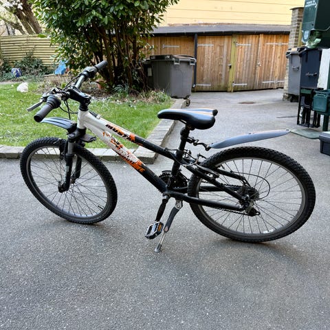 Den har skrammer, men mekanisk er den i meget god stand. Skifter og bremser som den skal. Dæk holder luft. Lygter frem og bag, en nøgle medfølger.