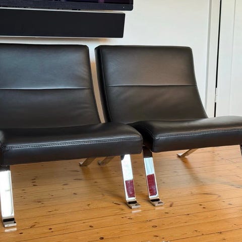 SUPER FLOT KVALITETS LÆNESTOL I SORT LÆDER OG CHROM STEL . I RIGTIG FLOT STAND .