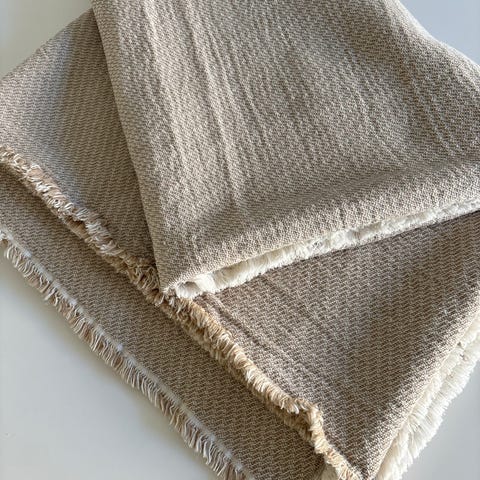 To styks quiltet tæppe/sengetæppe fra House Doctor i beige og lys grå og gule farve. Stoffet er meget blødt. Made in India “skades of colors”