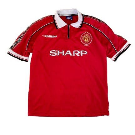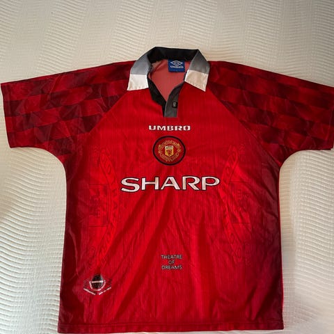 Original Manchester United trøje med klassisk SHARP sponsor.