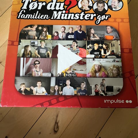 Sjovt Tør du? Familien Münster gør brætspil med spilleplade, kort og små brikker. Der er forskellige kategorier med udfordringer og spørgsmål, som man kan spille sammen med familie eller venner.